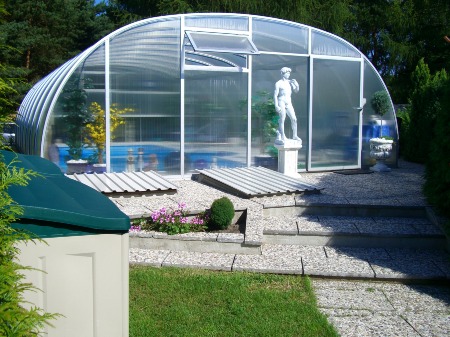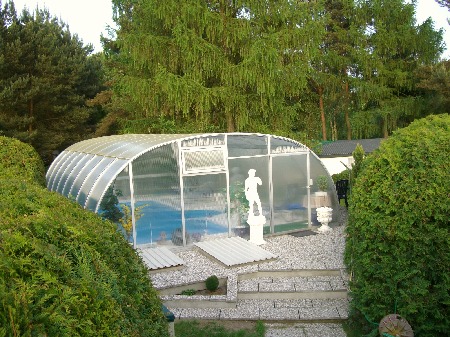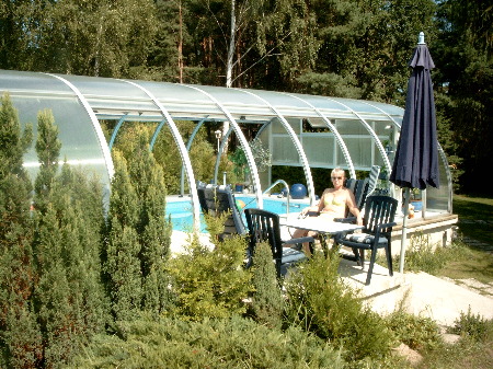 Wenn Sie im Pool sind, wird kein anderer stören - dafür sorgt die weit sichtbare "Besetzt-Anzeige" (Signalstab oberhalb des Pooldaches).